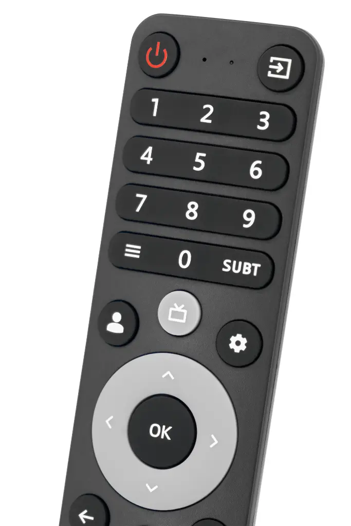 Пульт на ИК сигнале, не требует никаких настроек, достаточно установить батарейки и наслаждаться просмотром любимых каналов и передач!