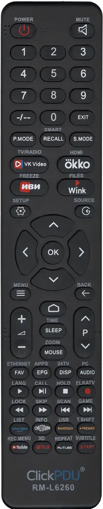 Пульт HUAYU для телевизоров брендов: ECON, YUNO, HI, Leff, Vekta, Irbis, Hartens, DEXP, Digma, Hyundai, Novex, Leben, STARWIND, Loview, Orion, Supra, FUSION, Akira, AMCV, RAZZ