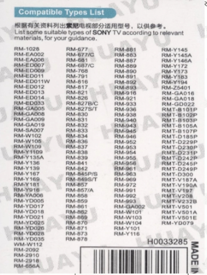 Универсальный пульт HUAYU RM-191A-1 для телевизоров марки SONY!