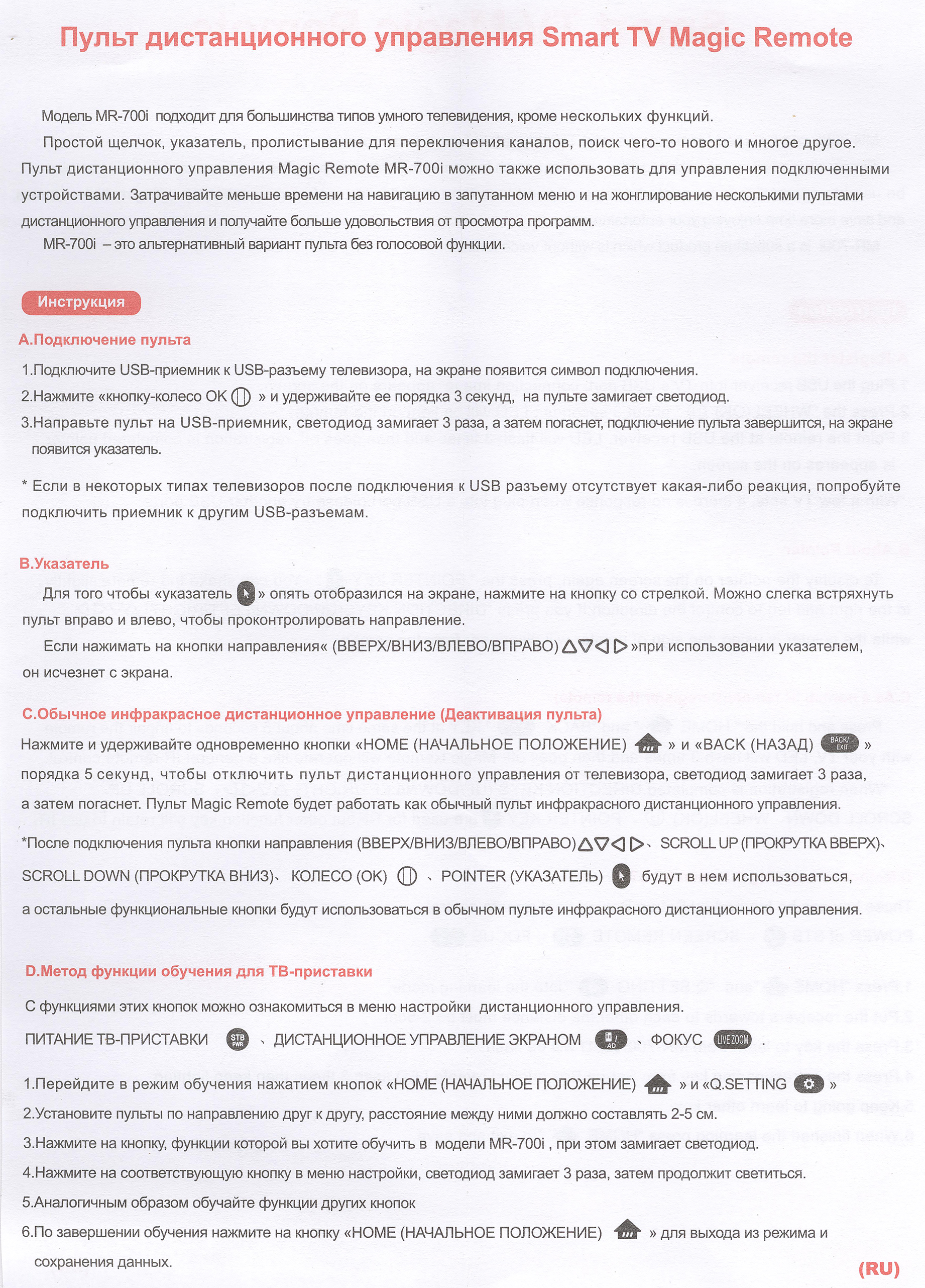 Пульт заменяет все пульты Magic Motion от LG Smart TV,