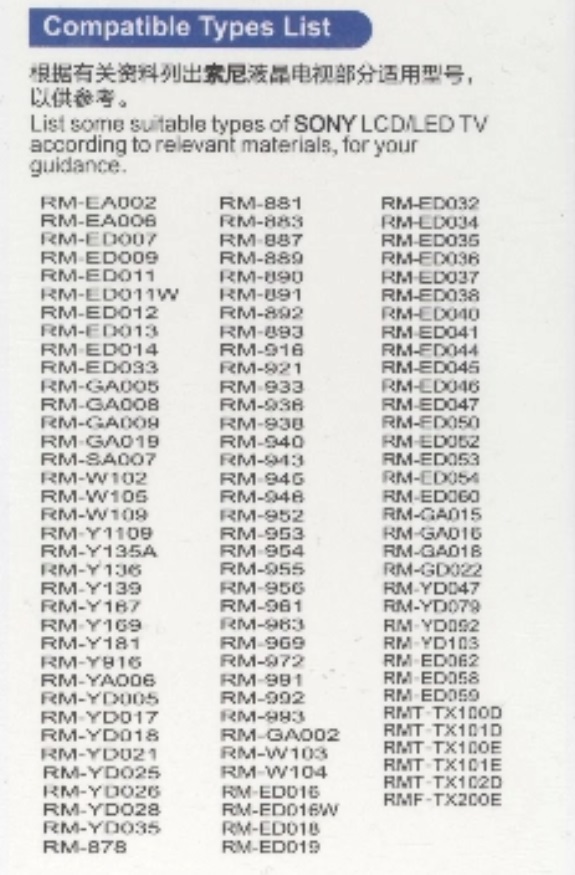 Универсальный пульт ClickPDU RM-L1165 для телевизоров марки SONY!