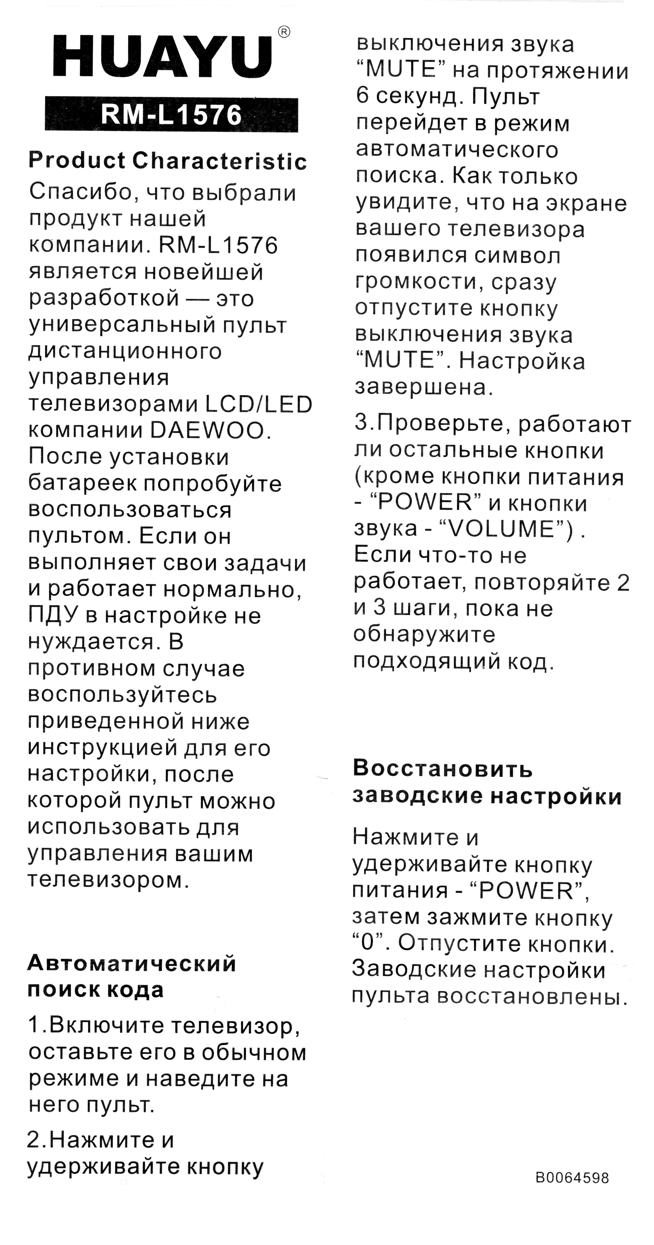 Универсальный пульты Huayu RM-L1576 для телевизоров DAEWOO
