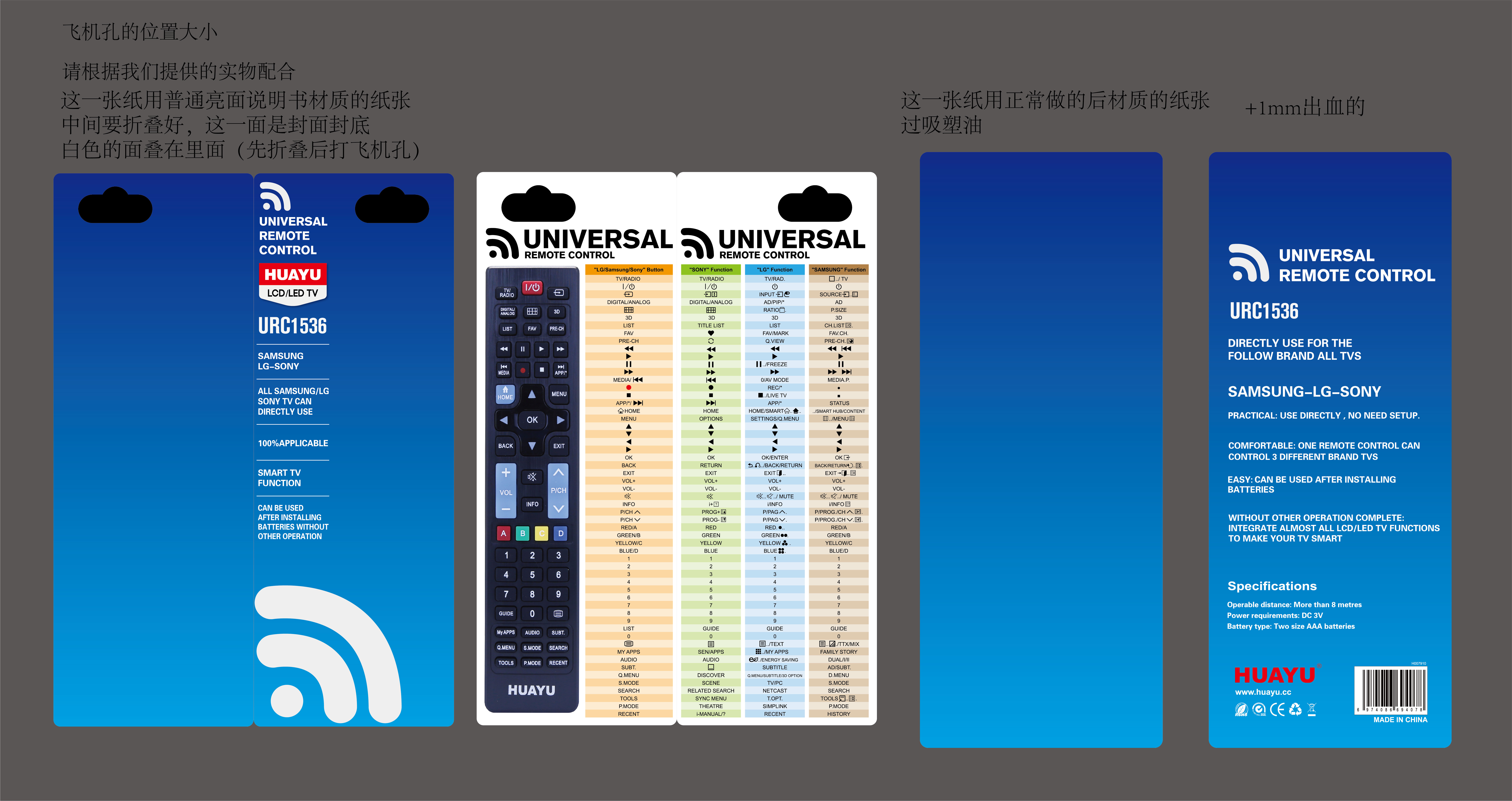 Универсальный телевизионный пульт HUAYU для всех телевизоров SAMSUNG - LG - SONY! Поддерживает Smart TV. Работает без настройки, сразу после установки батареек. Удобный корпус пульта ДУ с классической компоновкой больших кнопок кнопок позволит управлять телевизором с удобством. Пульт отвечает высоким мировым стандартам качества и безопасности, что подтверждено соответствующей сертификацией.