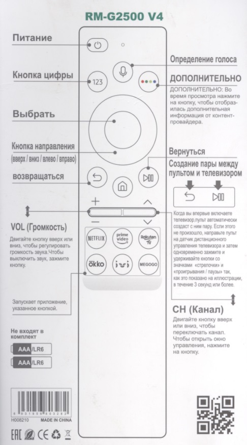 Пульт имеет голосовую функцию, что бы ее активировать необходимо сопряжение с телевизором: