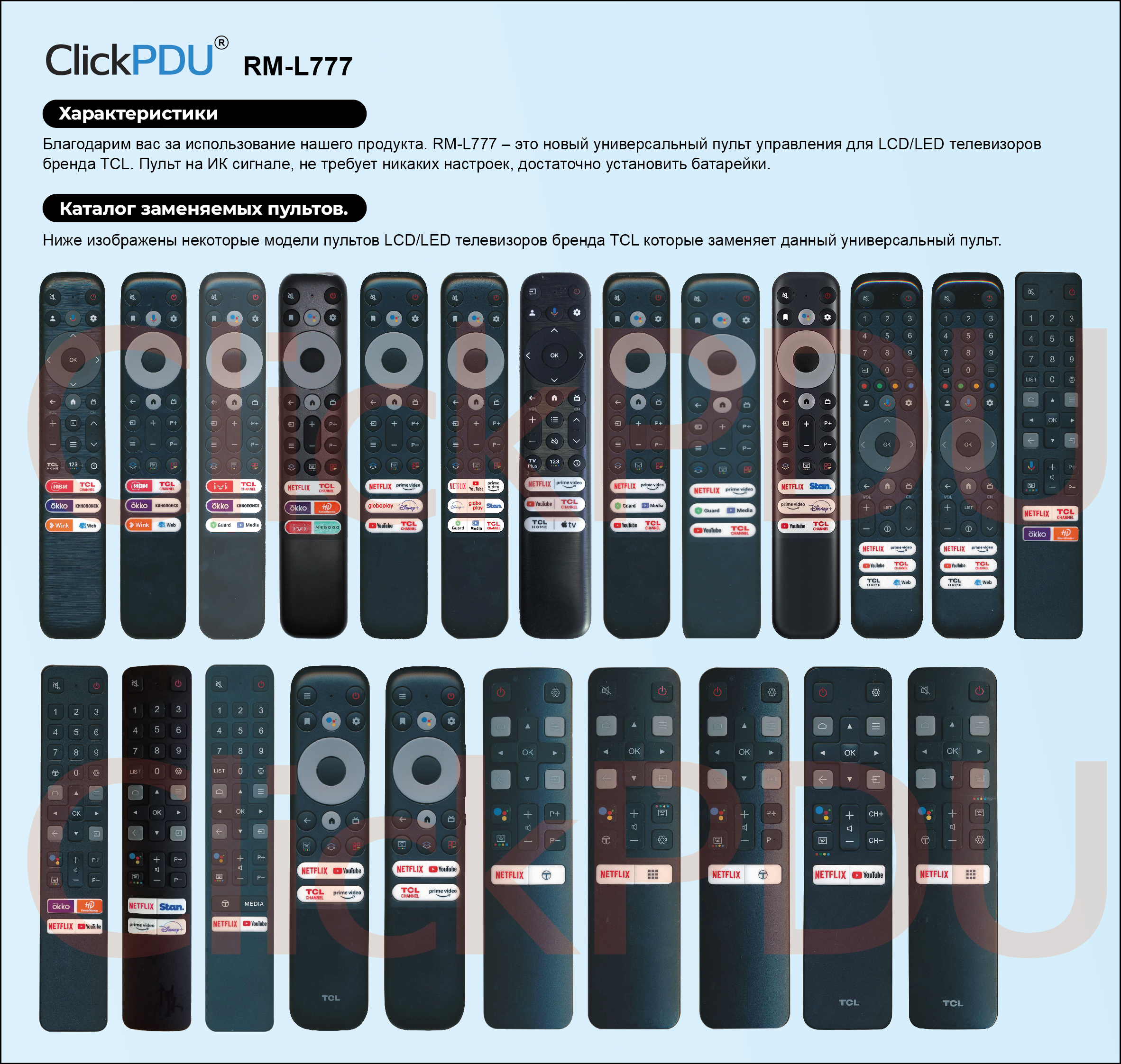 Универсальный пульт ClickPDU для телевизоров TCL.