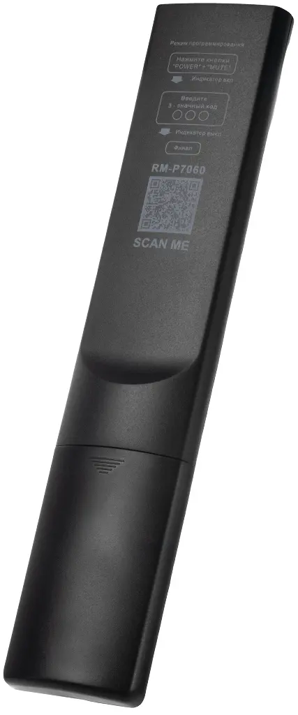 Пульт работает на ИК сигнале, имеет 2 вида настройки: ручной ввод кода и автоматический поиск