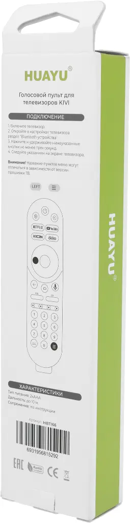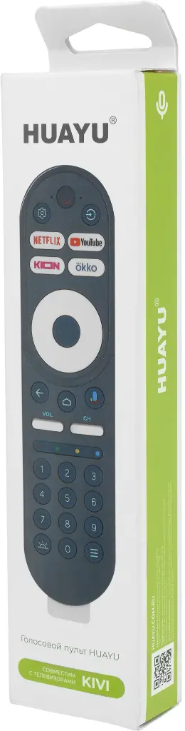 Пульт HUAYU заменяет модели пультов в похожем корпусе для телевизоров бренда KIVI