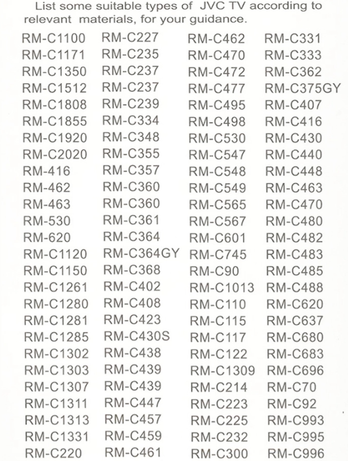 с любым телевизором марки JVC! Пульт высокого качества: выполнен на высококачественной микросхеме,