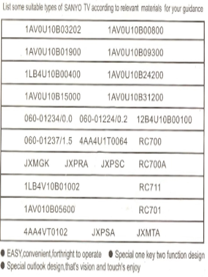 Пульт высочайшего качества, выполнен с применением первоклассного ABS пластика, лучшей резины и на качественной микроэлектронике. Надписи нанесены высокоточной шелкографией, стойкой к истиранию. Все это гарантирует его долговечную и бесперебойную работу.