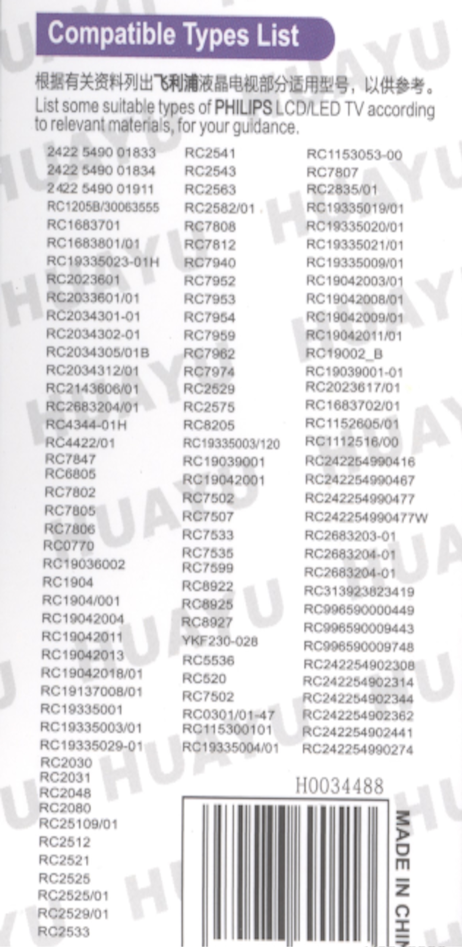 Универсальный пульт HUAYU для телевизоров бренда Philips