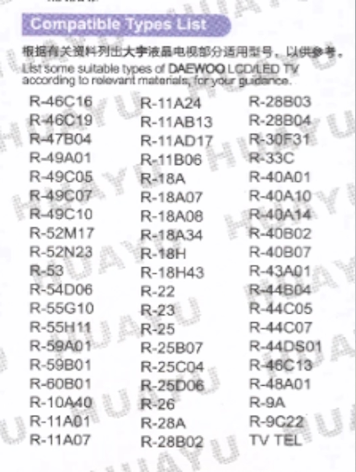 Универсальный пульт HUAYU RM-827DC для телевизоров марки DAEWOO!