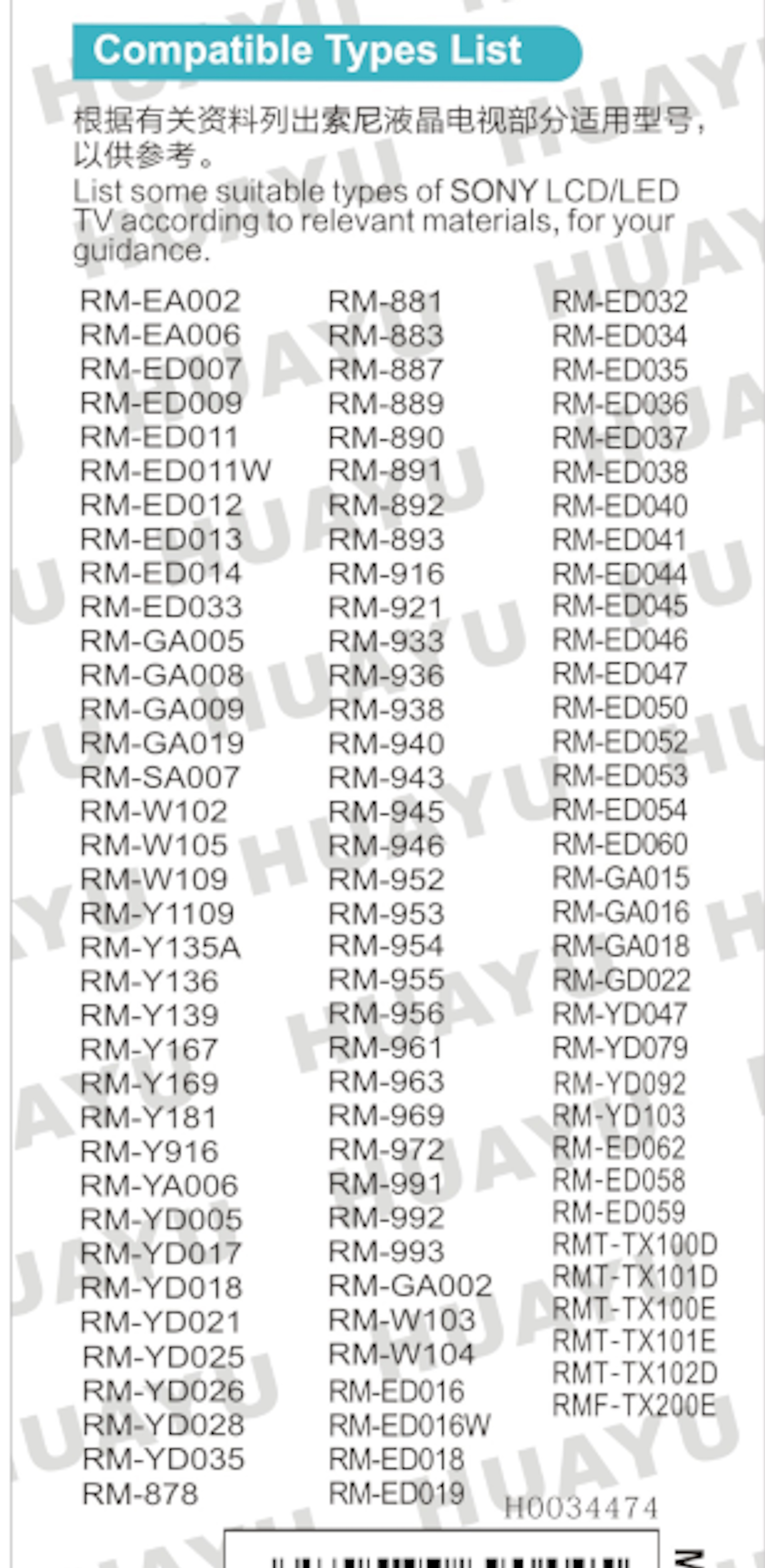Универсальный пульт HUAYU RM-L1118 для телевизоров марки Sony!