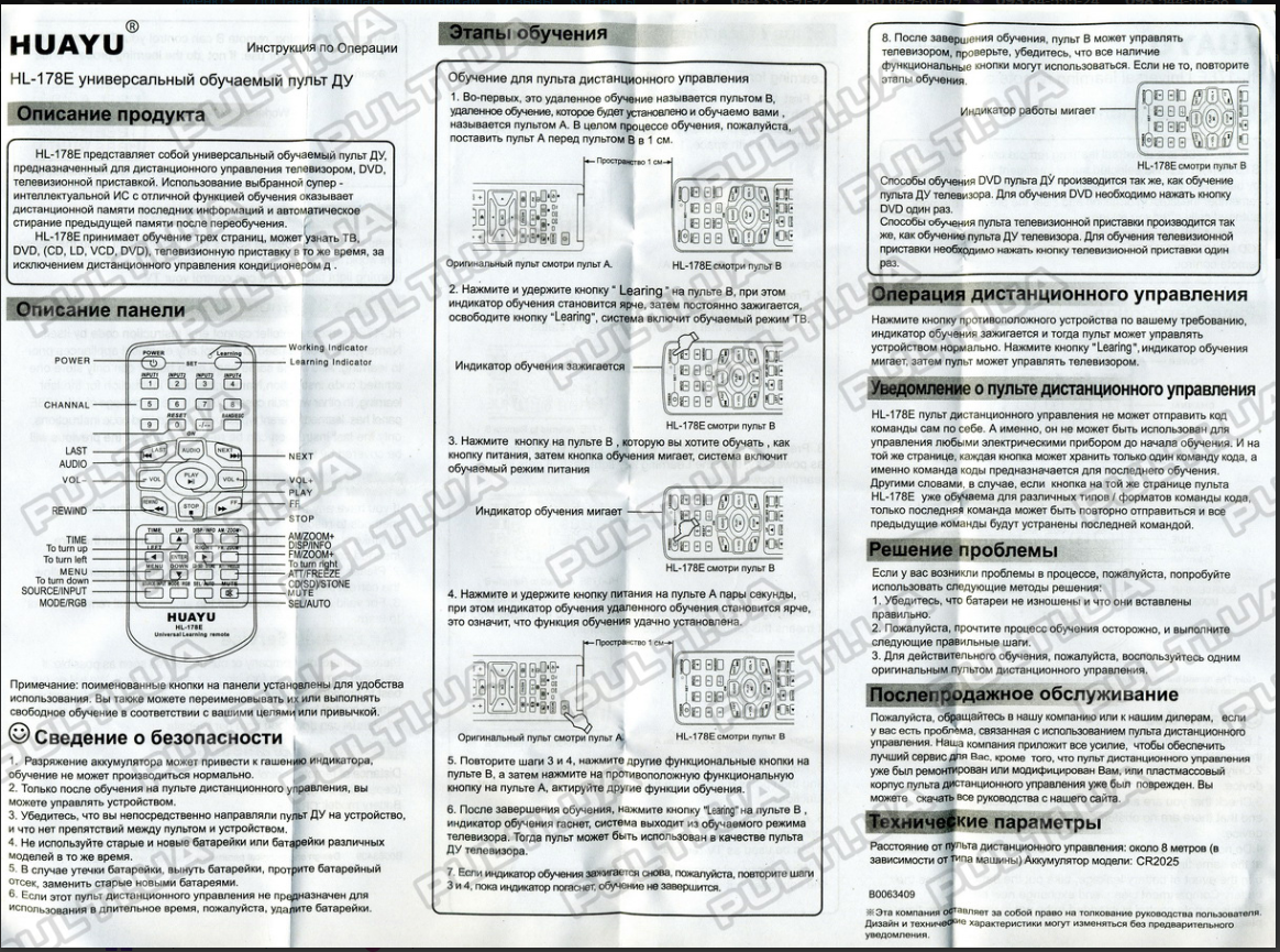 Пульт высочайшего качества, выполнен с применением первоклассного ABS пластика, лучшей резины и на качественной микроэлектронике. Надписи нанесены высокоточной шелкографией, стойкой к истиранию. Все это гарантирует его долговечную и бесперебойную работу.